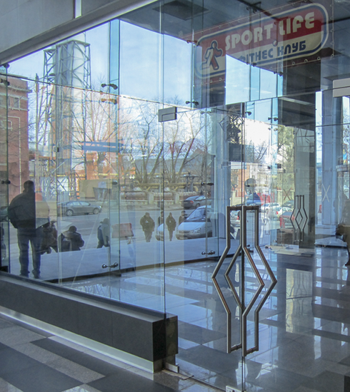 Vor über 10 Jahren entwickelte und patentierte der Konzern SACURA® eine originelle Fassadenkonstruktion mit einem mechanisch robusten Verbundglas ProVision TM UA Patent Nr 33278 Verbundsicherheitsglas mit ProVision TM mit einer durchsichtigen Zwischenschicht ist selbsttragend. Diese robuste Fassadenkonstruktion ermöglicht den Einsatz von Verbundglas bis zu 35 m hoch ohne Aluminiumpfosten Für die Fassadenmontage mit einer Höhe von 67 m verwenden wir eine zusätzliche Bewehrung mit einem Glasfasereinsatz